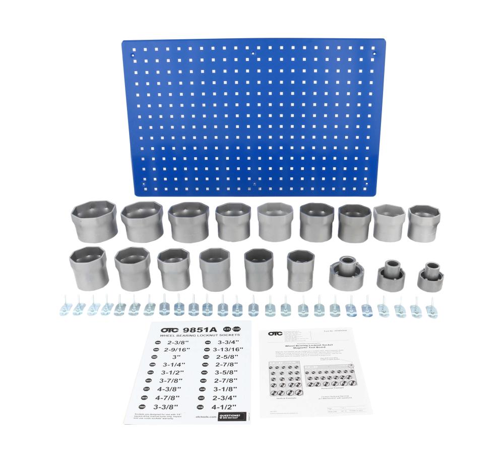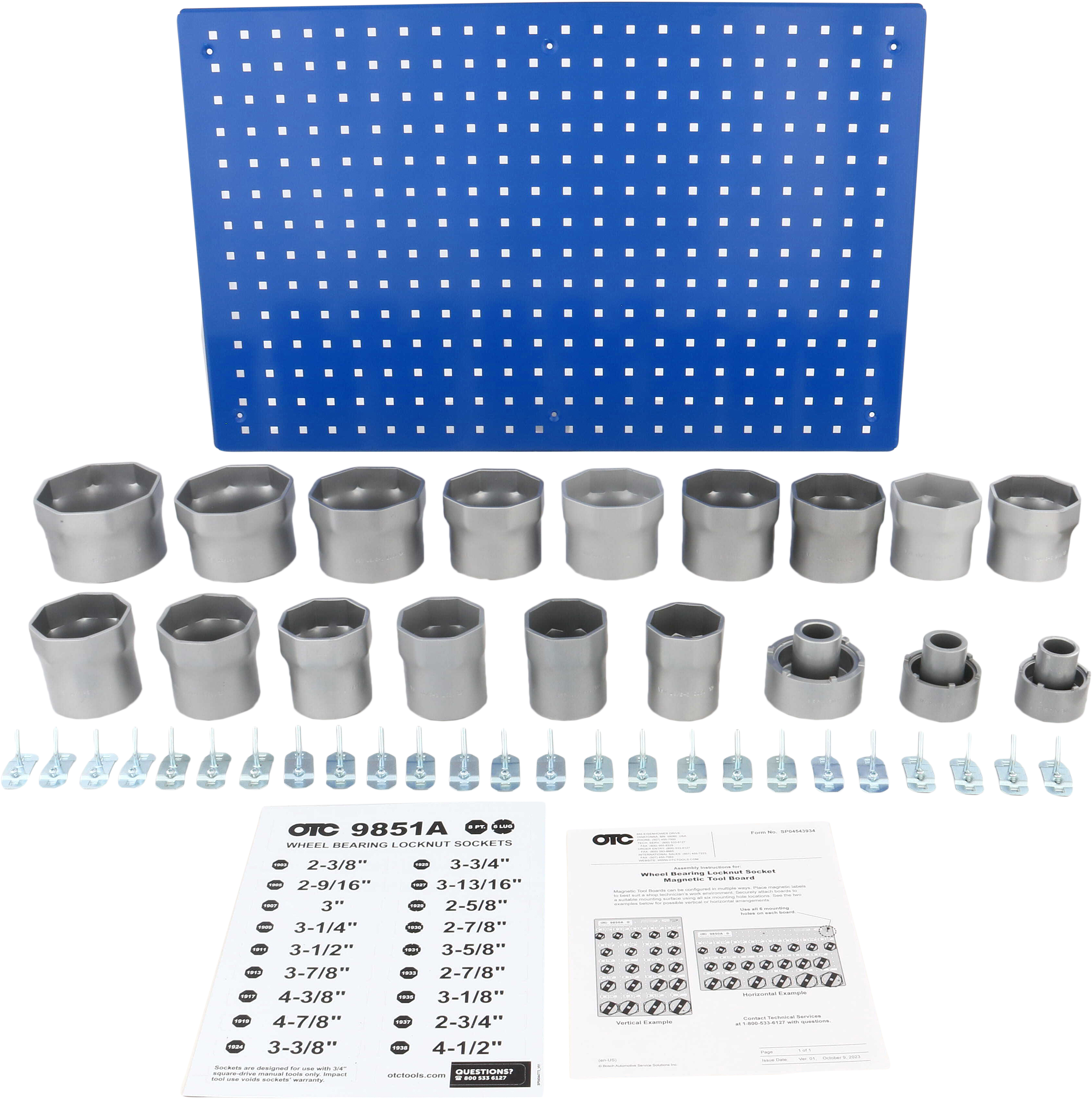 8-pt Wheel Bearing Locknut Sockets with Tool Board Wheel bearing locknuts are easy to remove or install with these specially designed sockets. They're made of high-strength steel and resist rounding out. Locknut sockets are required for reinstallation of the locknut to ensure the proper torque setting on wheel bearings.