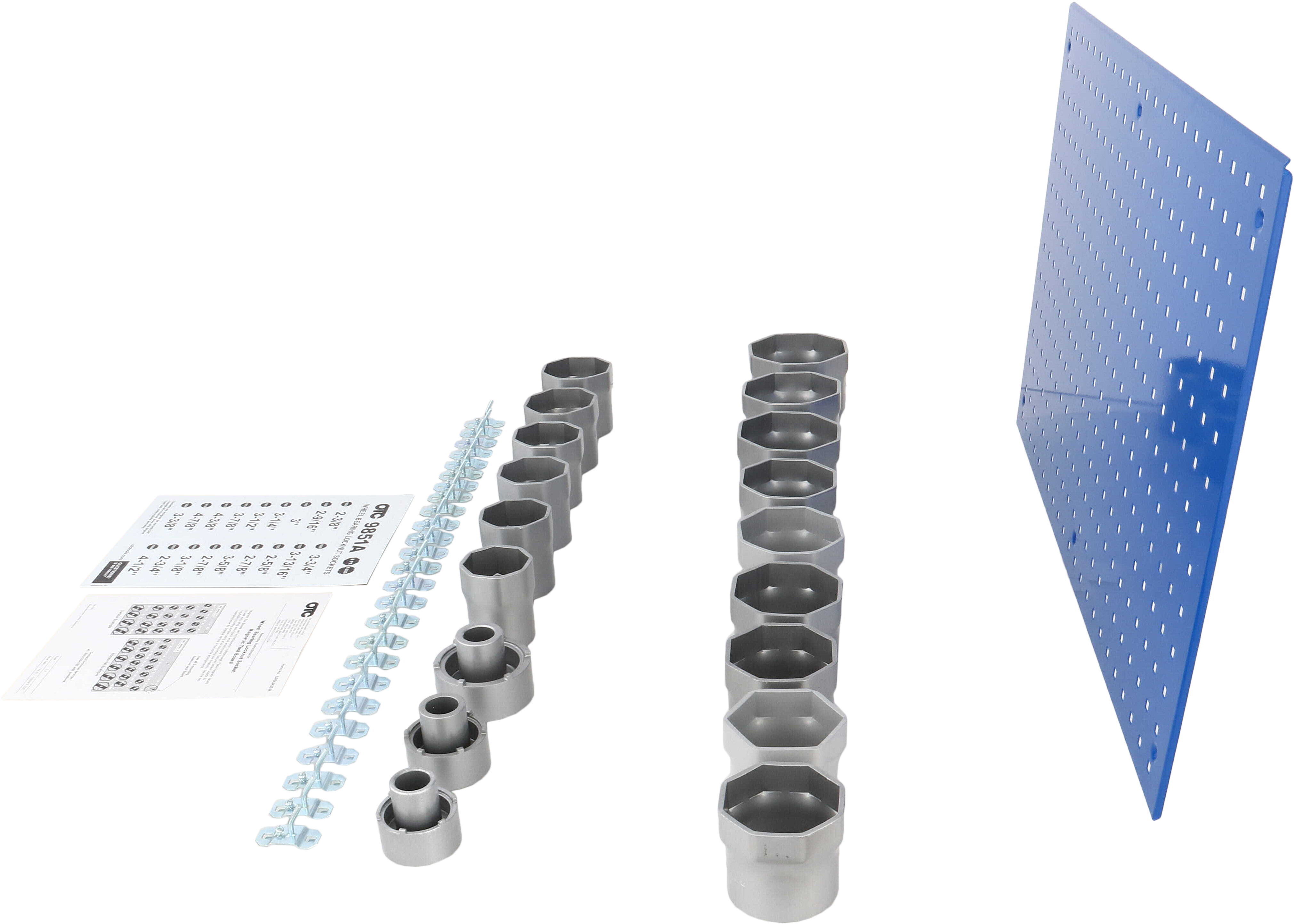 18 wheel bearing locknut sockets (8 pt.) with tool board.