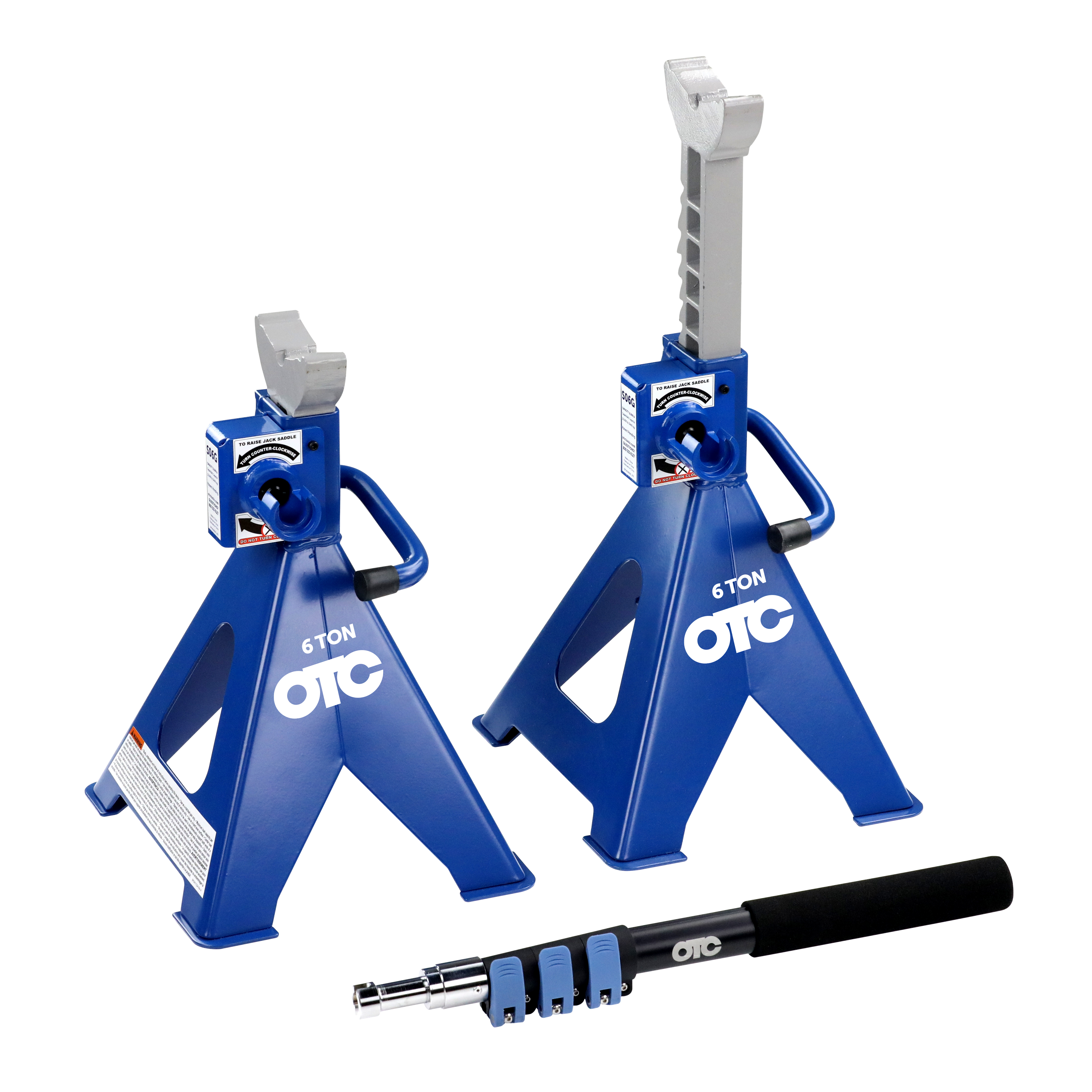 The OTC S0XG-H Extendable Geared Jack Stand Handle is a single replacement handle for S03G and S06G geared jack stands. Three individual locking sections extend handle from 19" to 54" in length to reach under lifted vehicles for safe placement and support of the geared jack stand. Collapses to fit in toolbox drawers or easy storage next to jack stands.