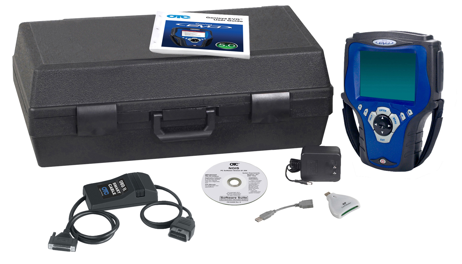 Genisys EVO® OBD II Kit Includes Genisys EVO featuring the System 5.0 with Code-Assist™ and Repair-Trac® experienced-based Confirmed fixes from Identifix®, NEW USA 2013 Domestic / Asian with ABS and European 2012 software including Pathfinder, Fast fixes information, InfoTech Component Information software, Automated System Test®, OBD II Smart Cable, manuals, and carrying case.